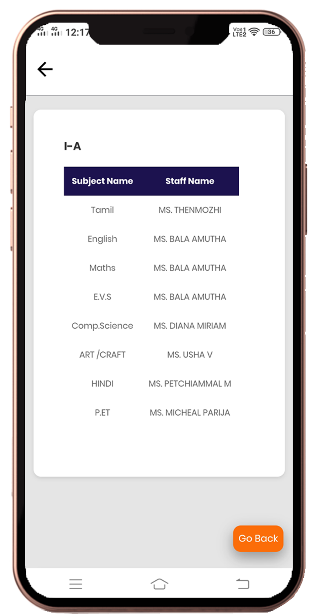 Subject Teachers Operaions List